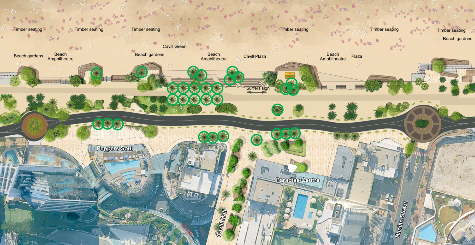 A plan that preserves our iconic trees, celebrates our unique character and transforms the Esplanade into a vibrant, playful and fully activated public space. It’s time for a vision that truly reflects the cultures of Surfers Paradise.