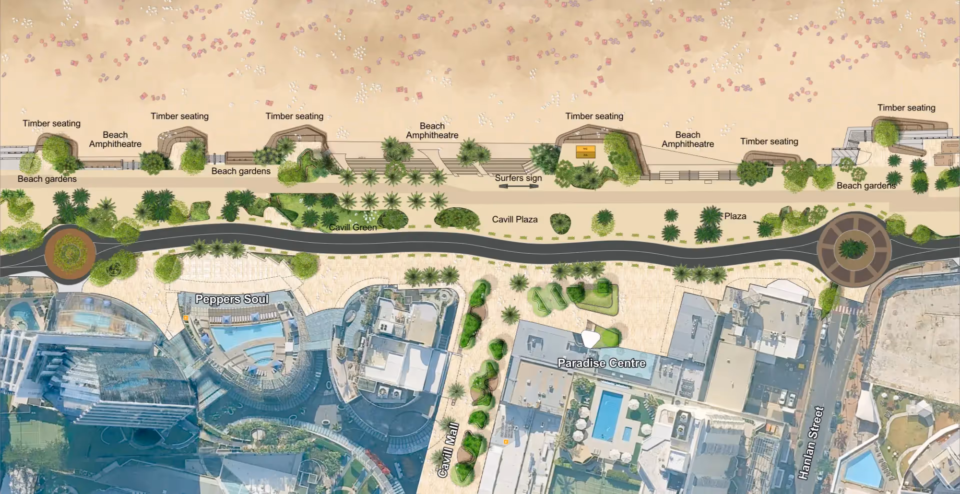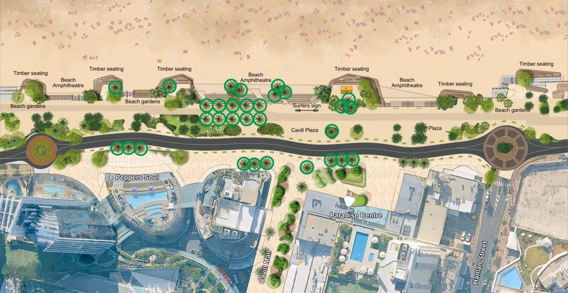 A plan that preserves our iconic trees, celebrates our unique character and transforms the Esplanade into a vibrant, playful and fully activated public space. It’s time for a vision that truly reflects the cultures of Surfers Paradise.